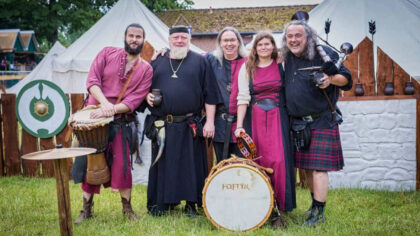 Bei sommerlichen Temperaturen und fast pünktlich gegen 19.00 Uhr erklangen die ersten Töne vielerlei Instrumenten wie Dudelsack und Schalmei. Mit kräftigen und lauten Stimmen so wie mächtigem Getrommel rissen die fünf Musiker die anwesenden Besucher von den Bänken. Das teilweise mittelalterlich gewandete Publikum hat mitgeklatscht und -gesungen. Langsame Balladen und schnelle Rhythmen – alles wurde geboten.